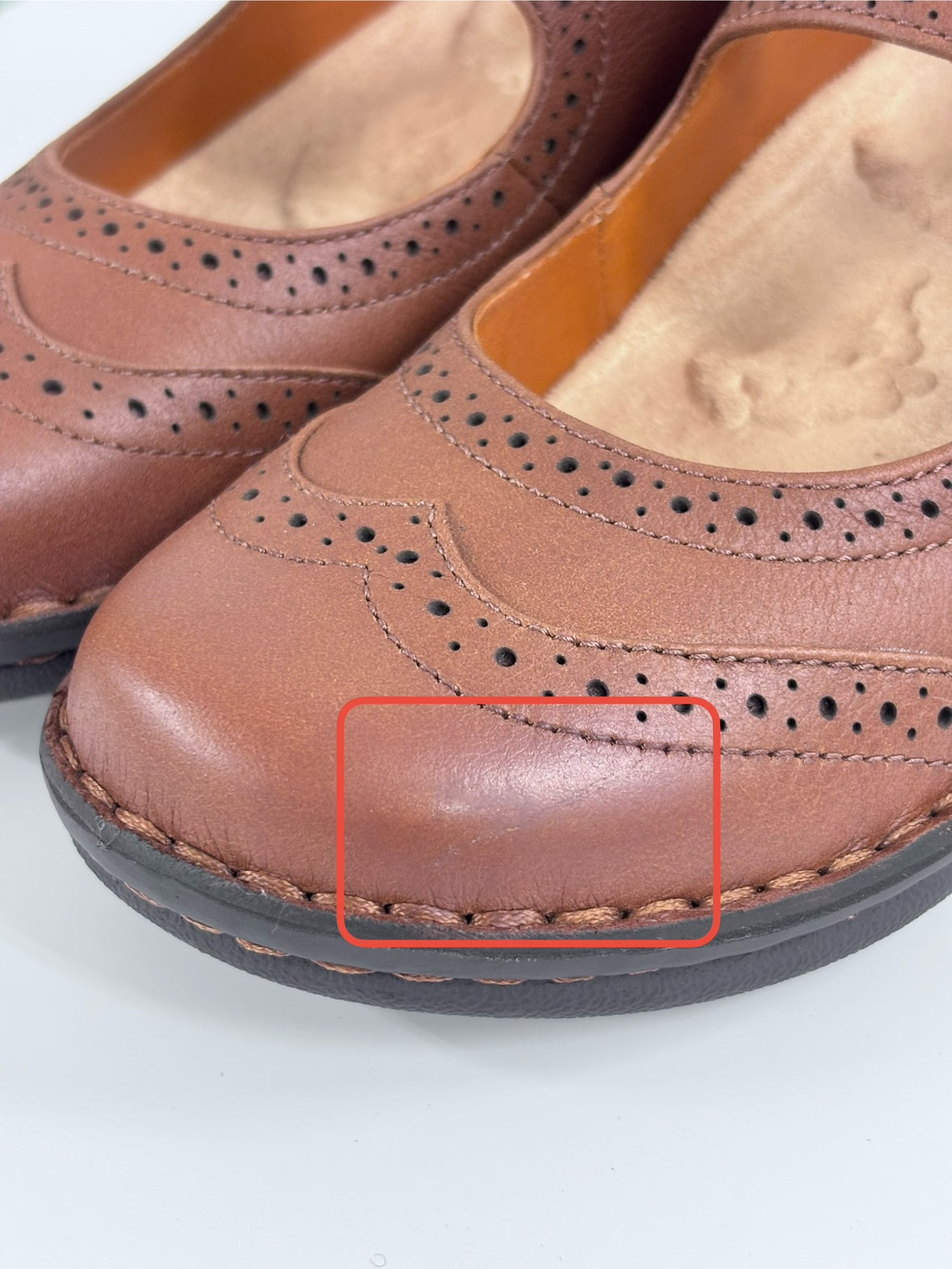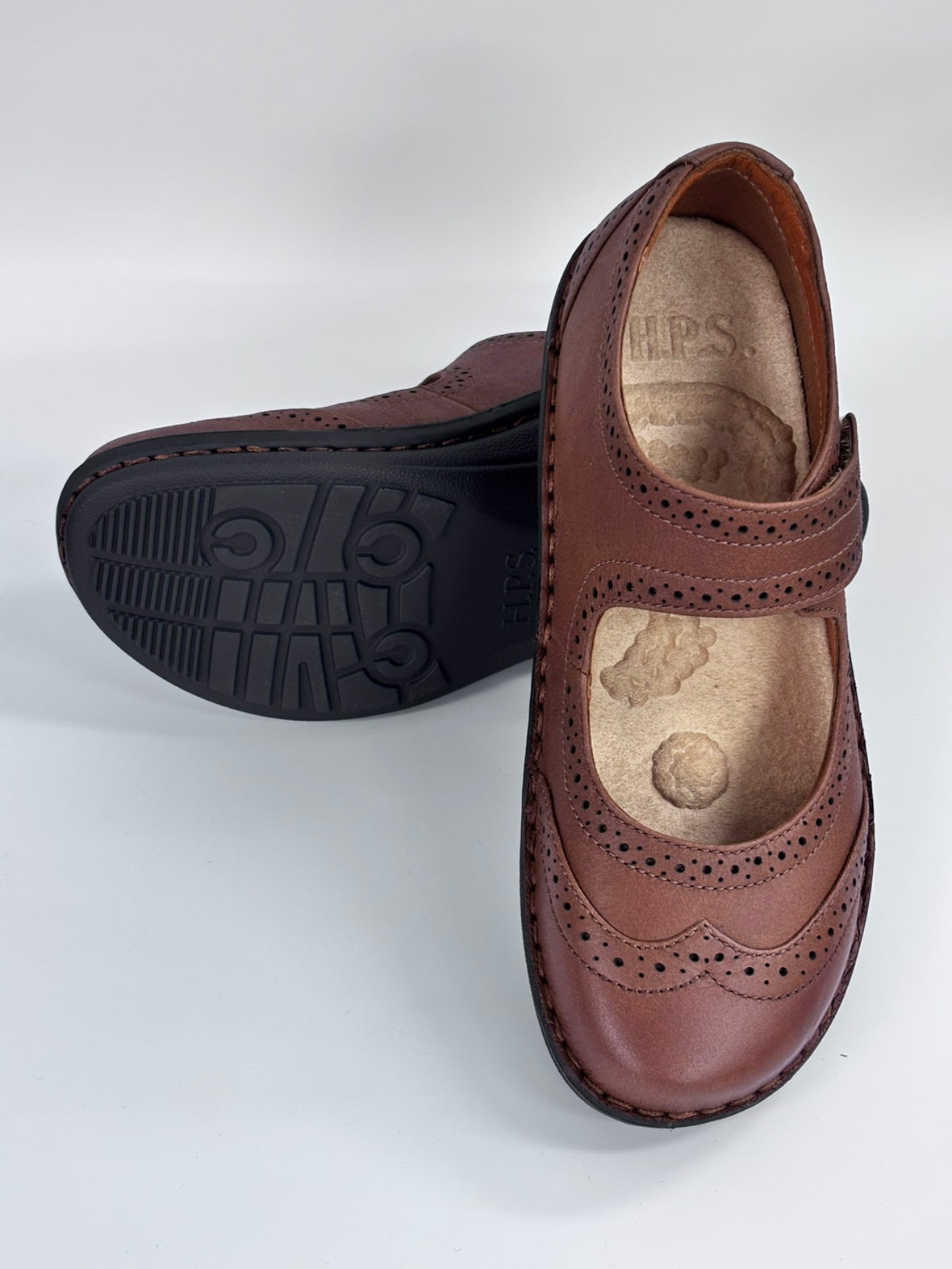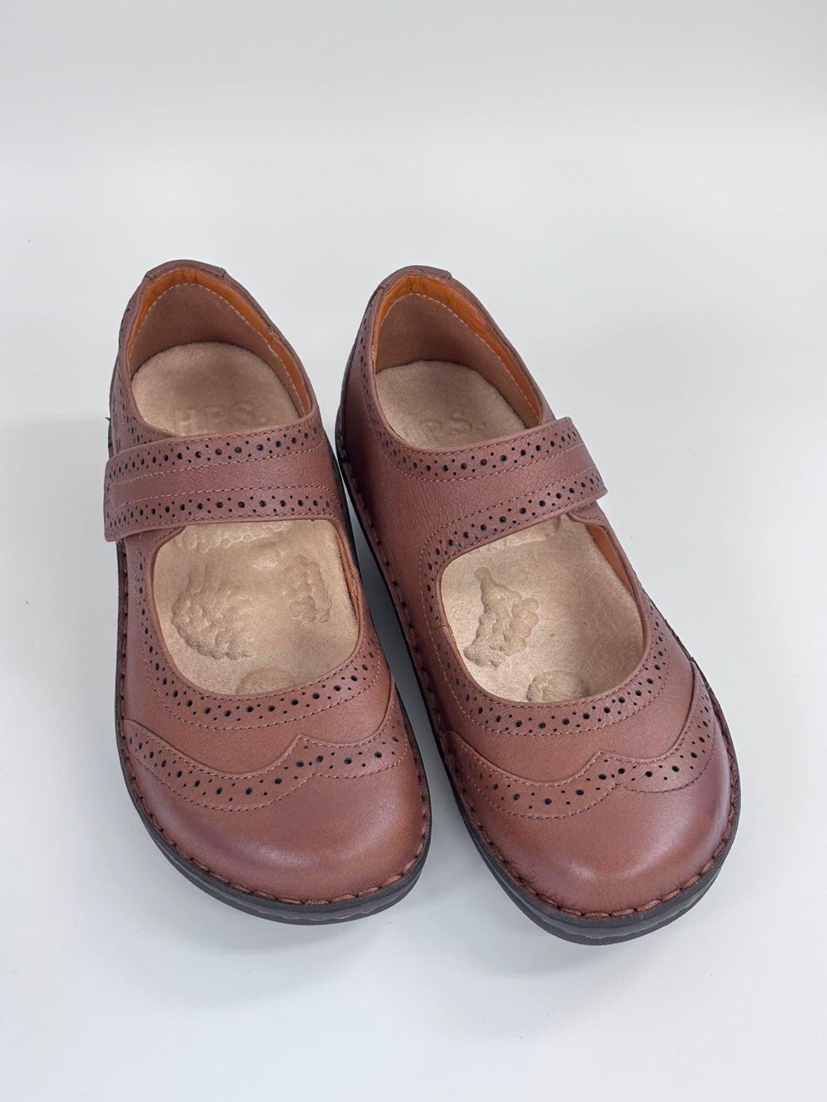 ウイングチップのデザインをあしらって懐かしさと可愛さを演出しました。甲部分をしっかり固定、安定感もあり履き心地でも好評を頂いているデザインです。