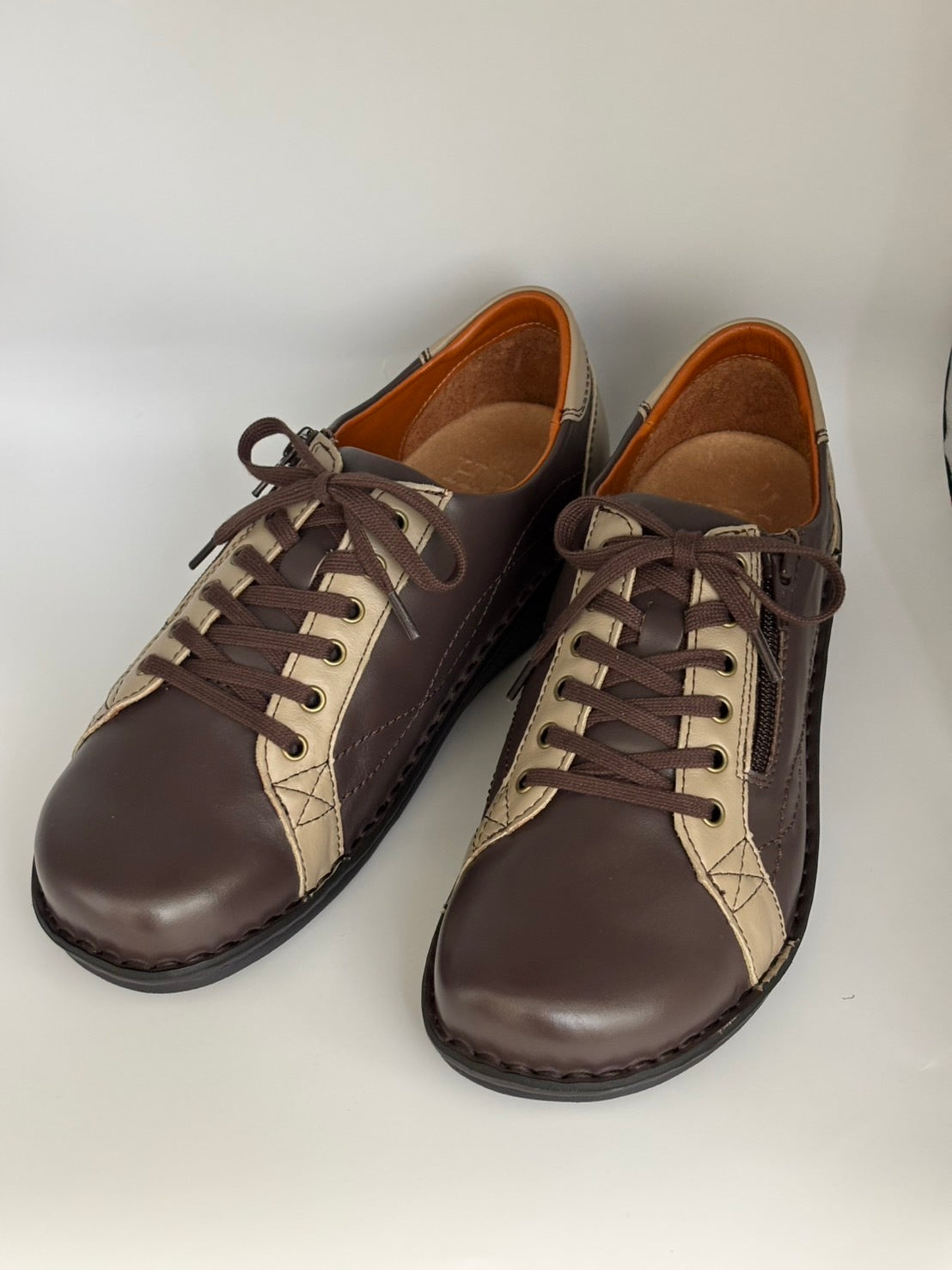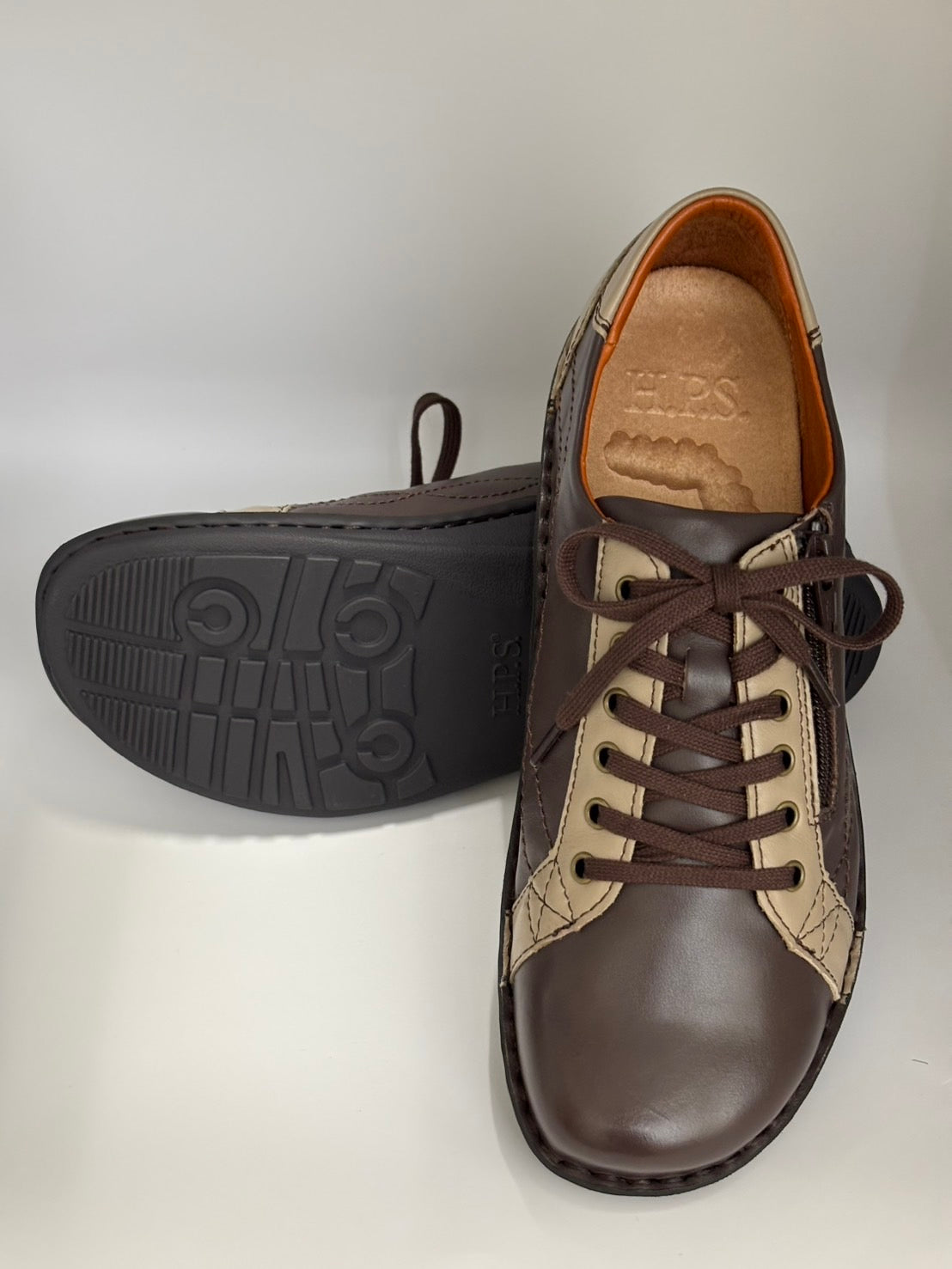 紐&ファスナーのつま先ゆったりタイプ大人気の定番デザイン。No.17880の牛革バージョンをイメージして作りました。 両サイドのステッチワークがかわいいデザインです。外側ファスナーでスニーカー感覚で履ける定番商品です。
