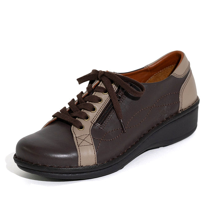【SALE】No.10753 スポーティーレースアップシューズ(ダークブラウン&グレージュ)