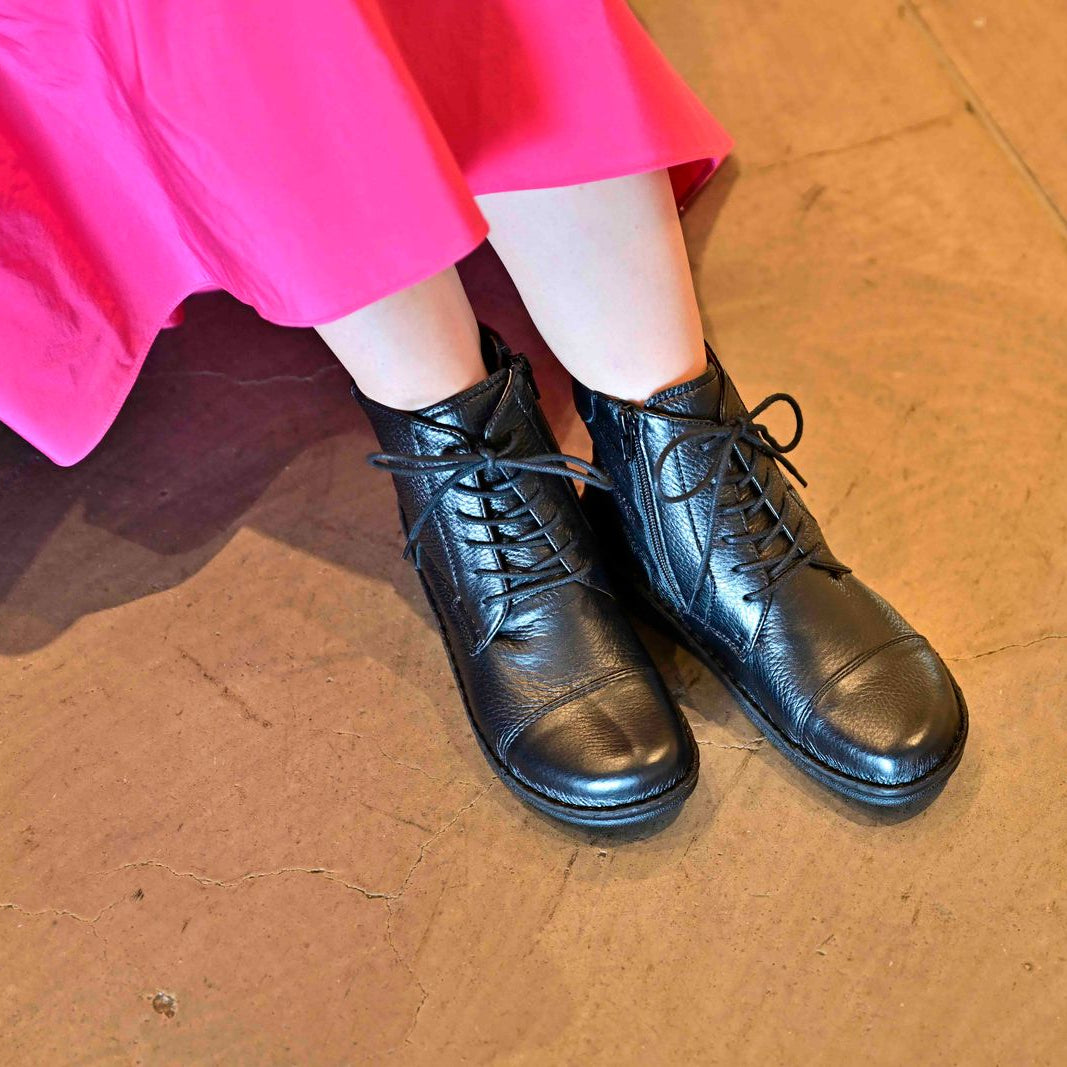 【25AW新作】【鹿革】No.68510 鹿革ソフトタッチレースアップブーツ(ブラック)